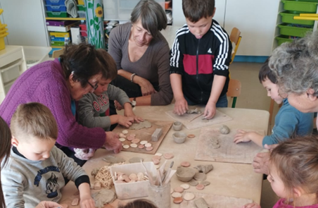 Des moments partagés intergénérationnels : ateliers cuisine, bricolage, musique, visites... avec les écoles et les accueils de loisirs du territoire.